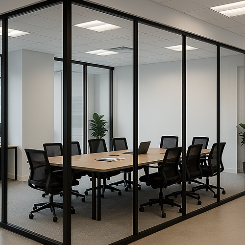 4) زیبایی شناسی مدرن: دیواره های شیشه ای یک ظاهر مدرن و حرفه ای ایجاد می کنند و دفتر را با نور طبیعی غرق می کنند و وابستگی به نور مصنوعی را کاهش می دهند.
