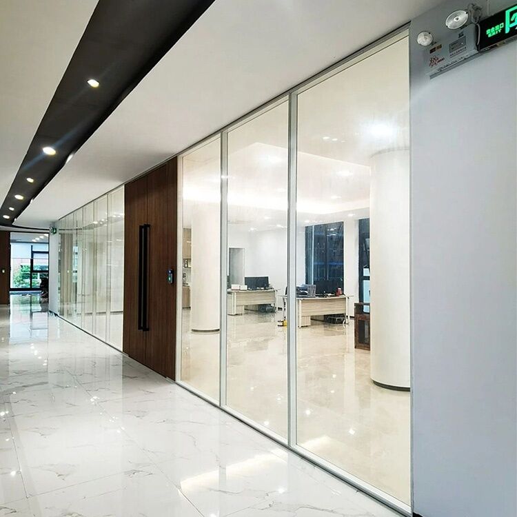 سیستم دیوار پارتیشن شیشه ای اداری با پانل های پرده ای خودپذیر از شیشه و چوب. در نسخه های یک شیشه، دو شیشه یا دو چوب موجود است.اما به هر حالتو️در حال گرفتن مزایای زیر نسبت به دیوارهای گسیخته معمولی هستند.